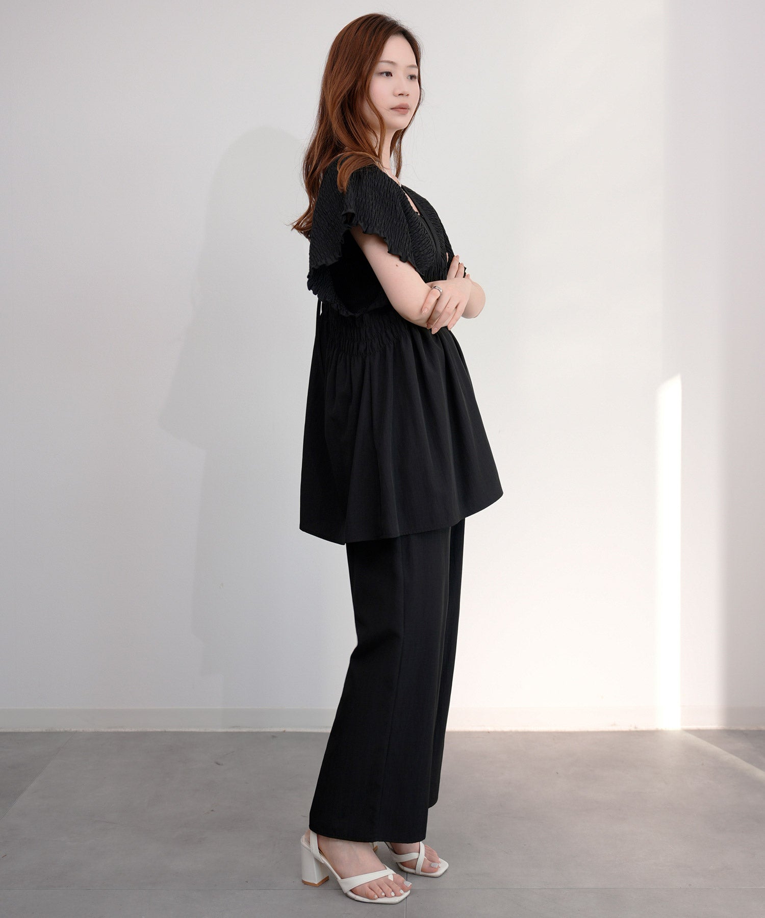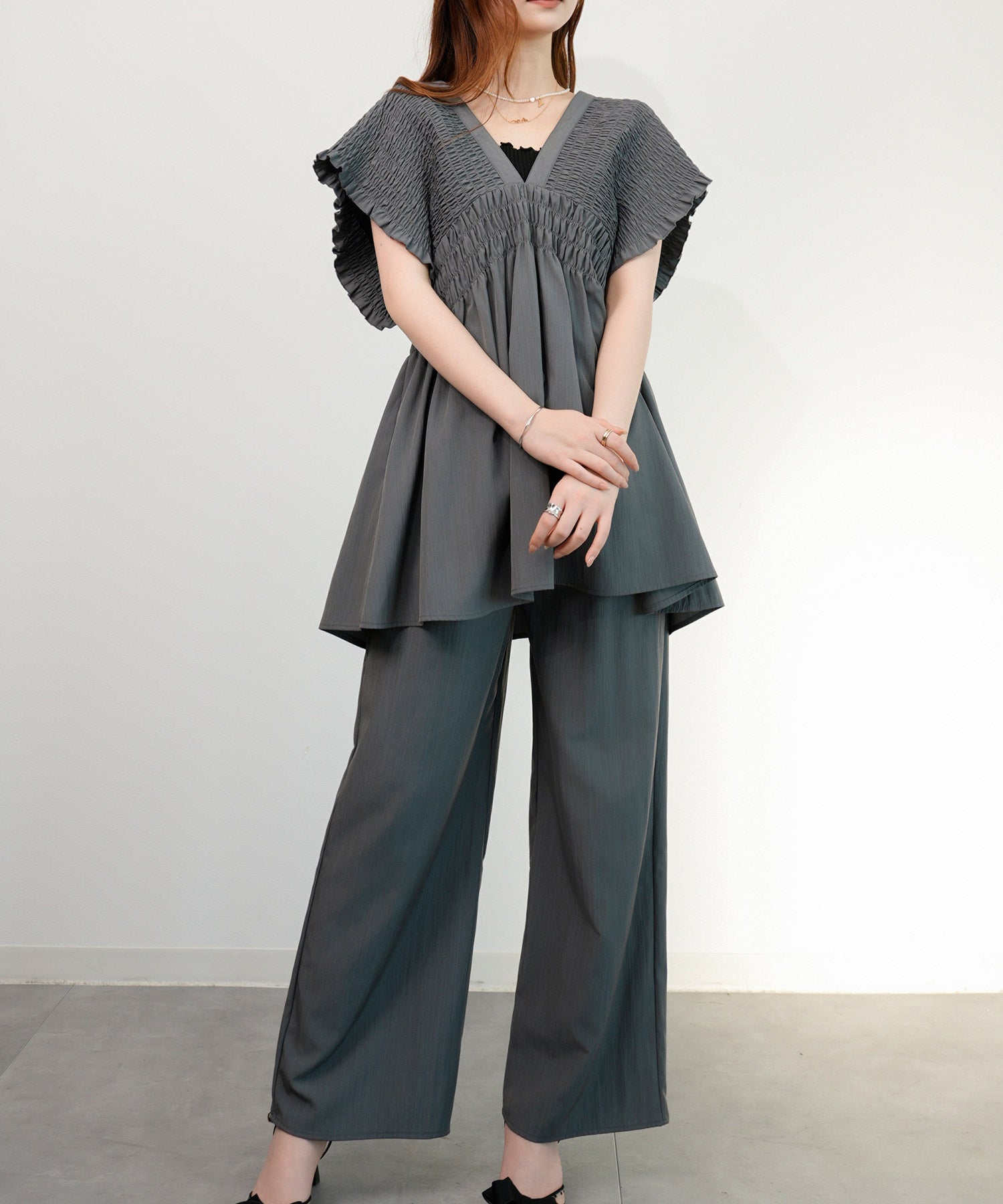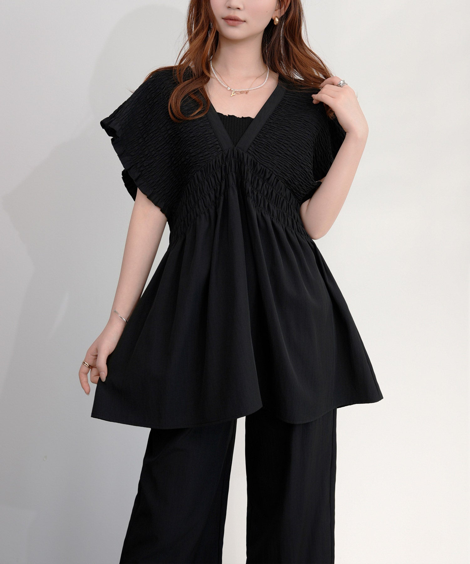 万能ペプラムパンツセットアップcy88639 ブラック