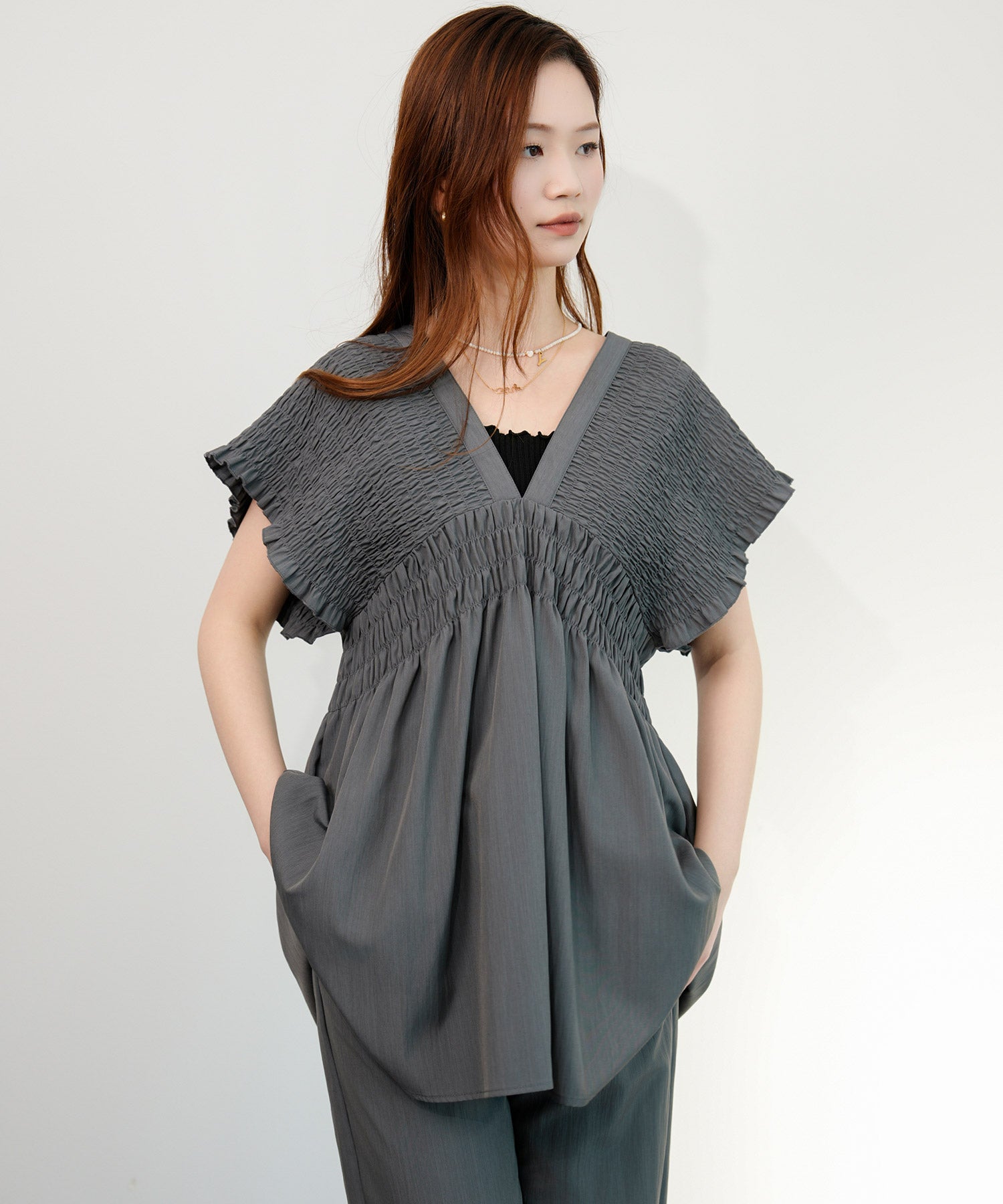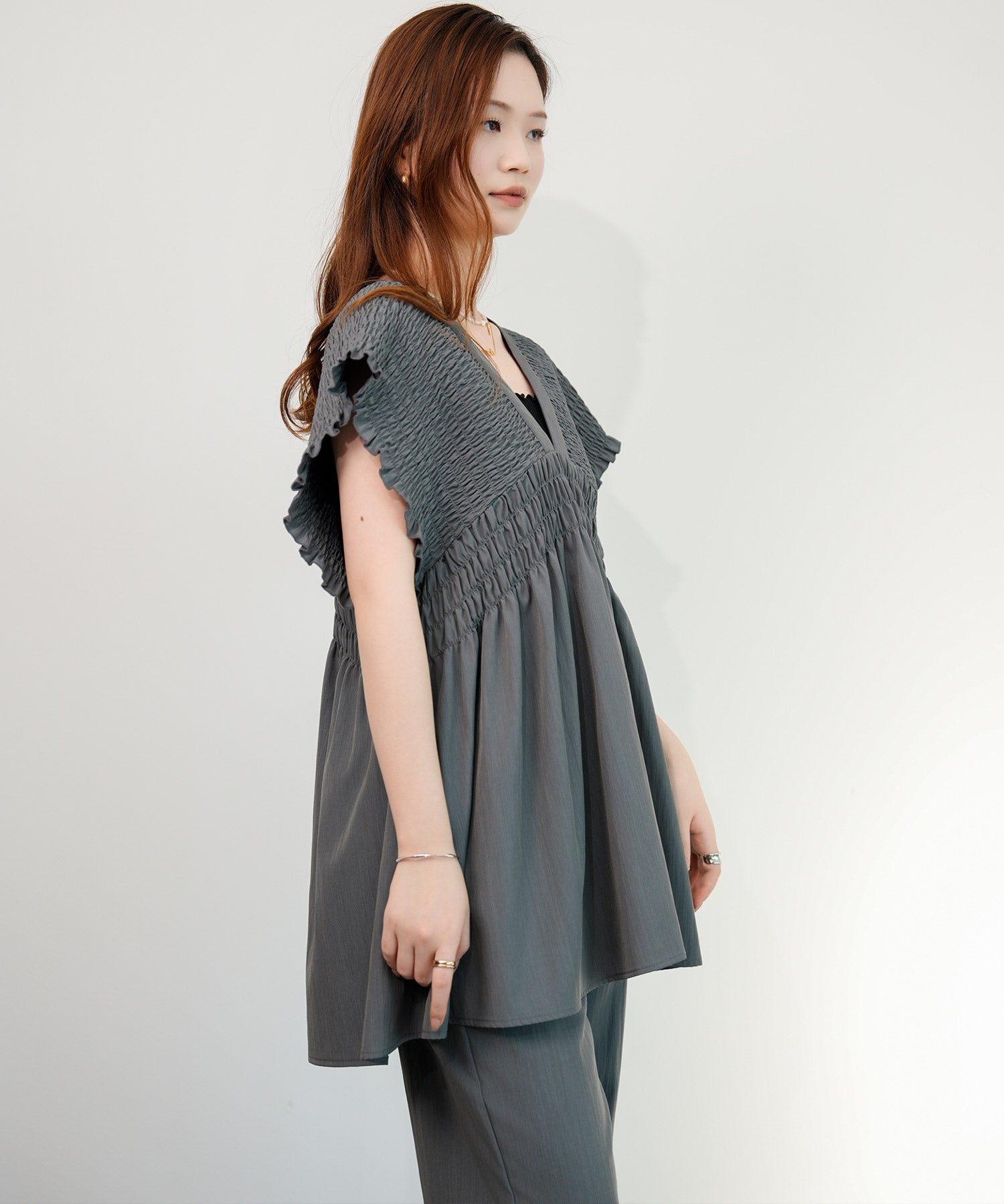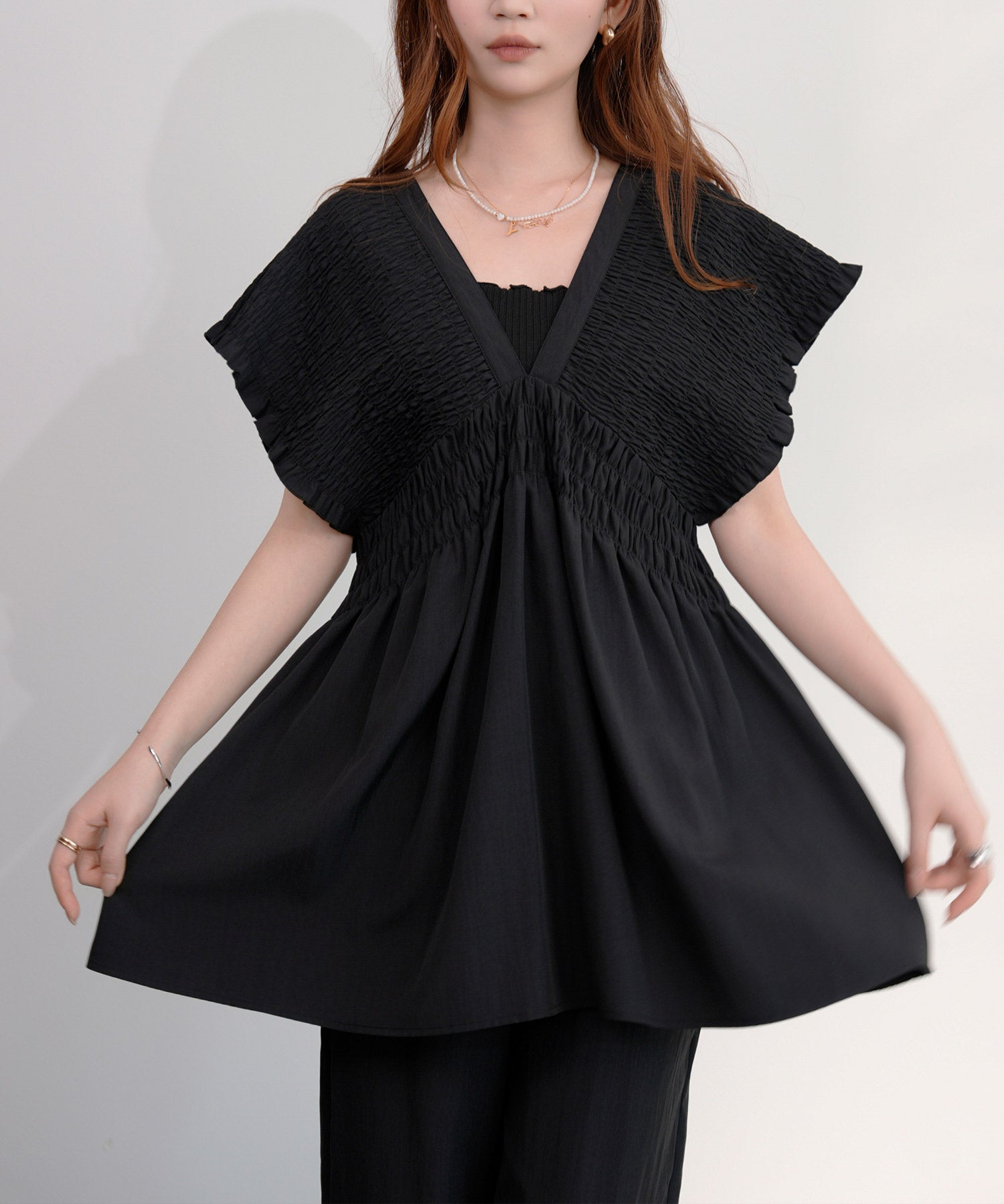 万能ペプラムパンツセットアップcy88639 ブラック