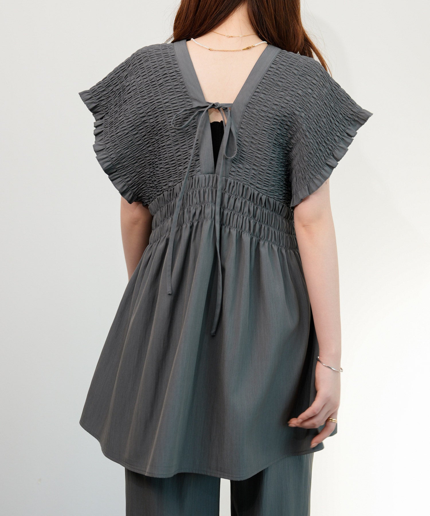 ウエストリボン付き美シルエットドレスcy88651 グレー