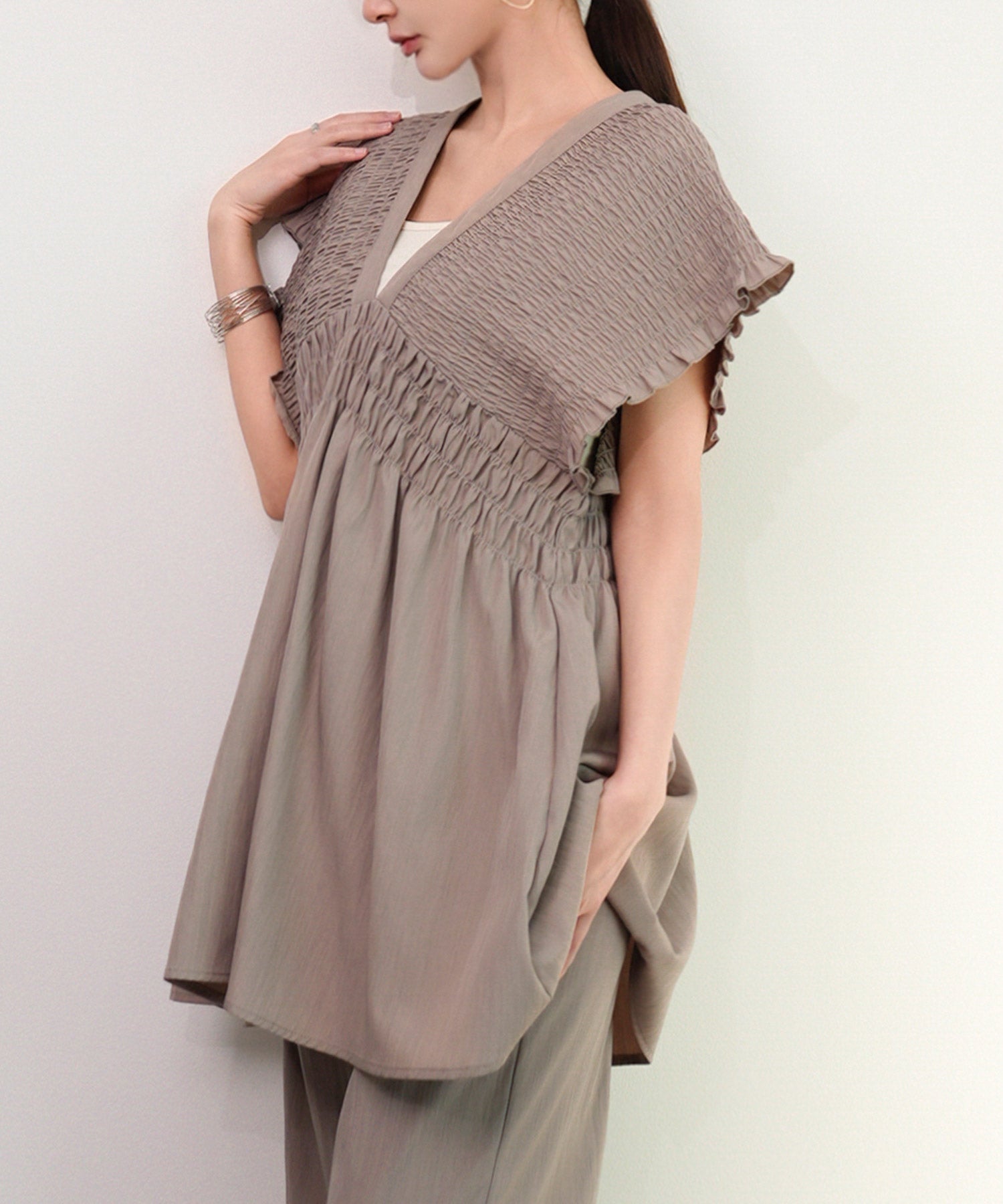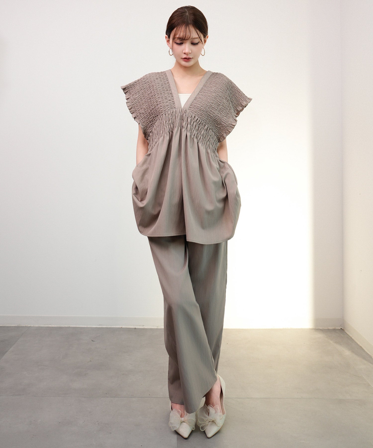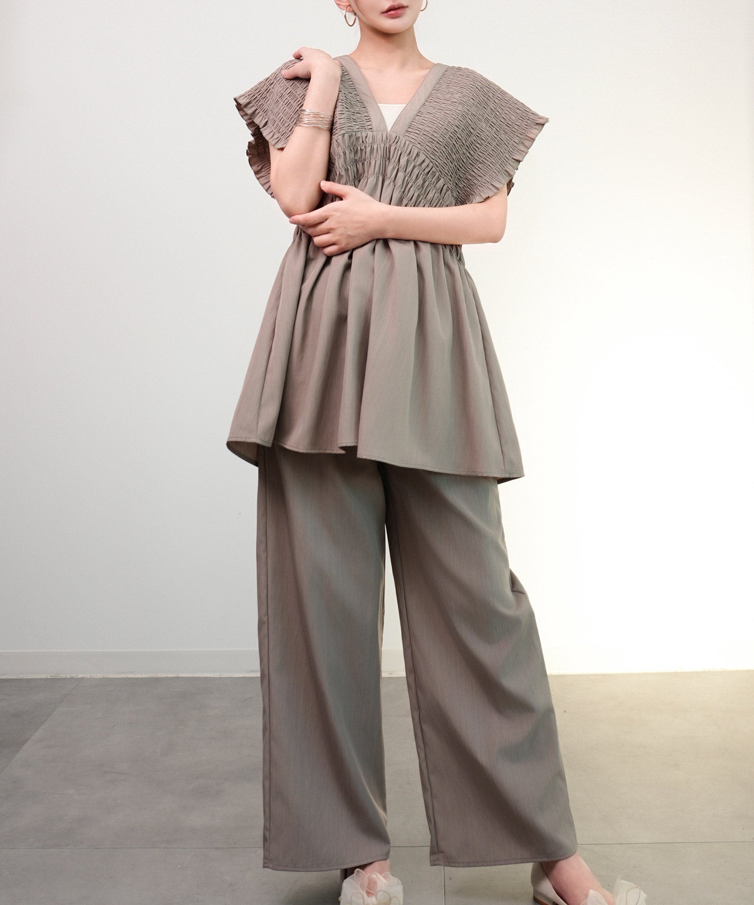 楽ちん×きれい見えの上下セットcy88631 ブラウン