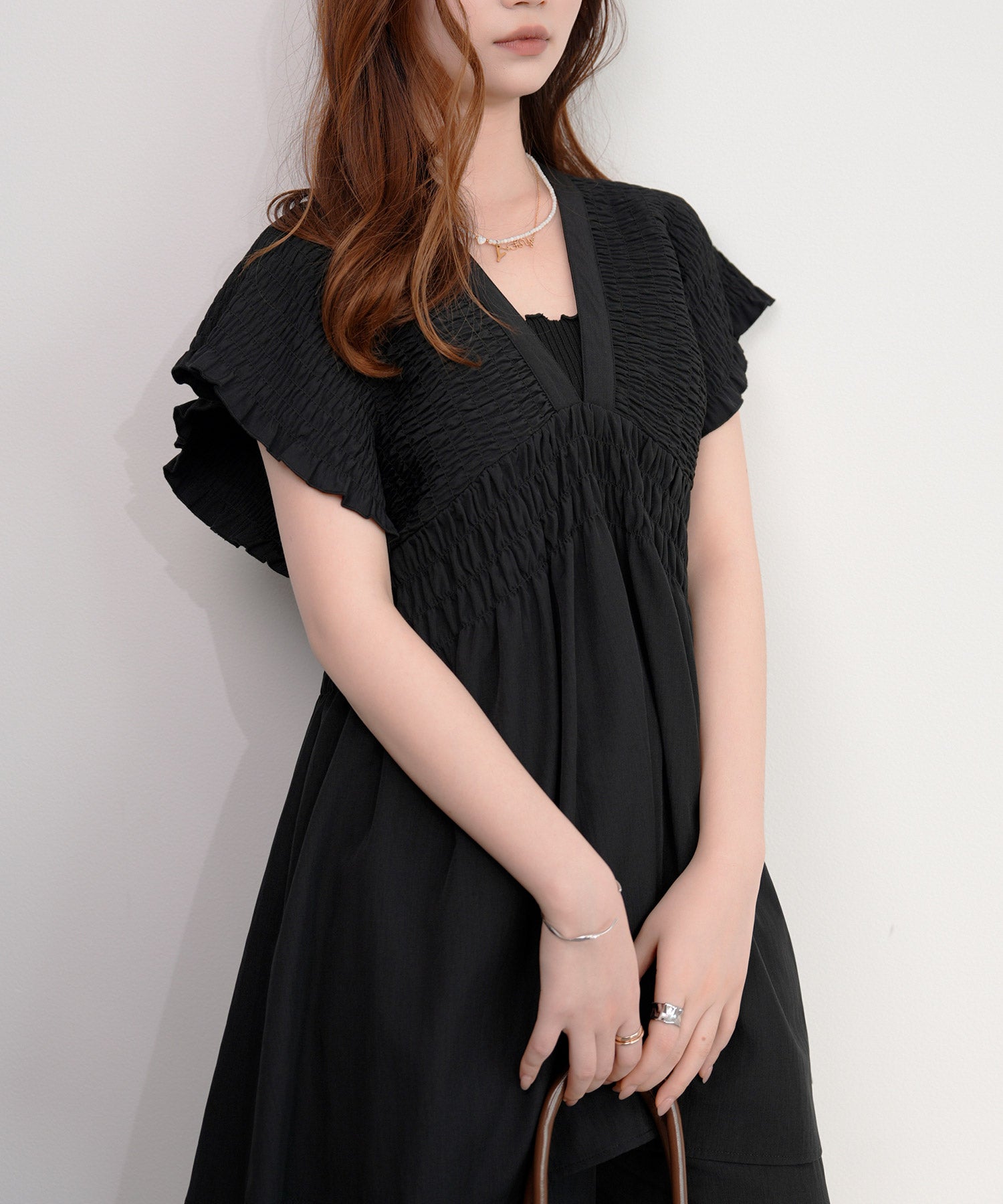 胸元フリルのレースドレス・結婚式ワンピース・お呼ばれパーティードレスcy88202